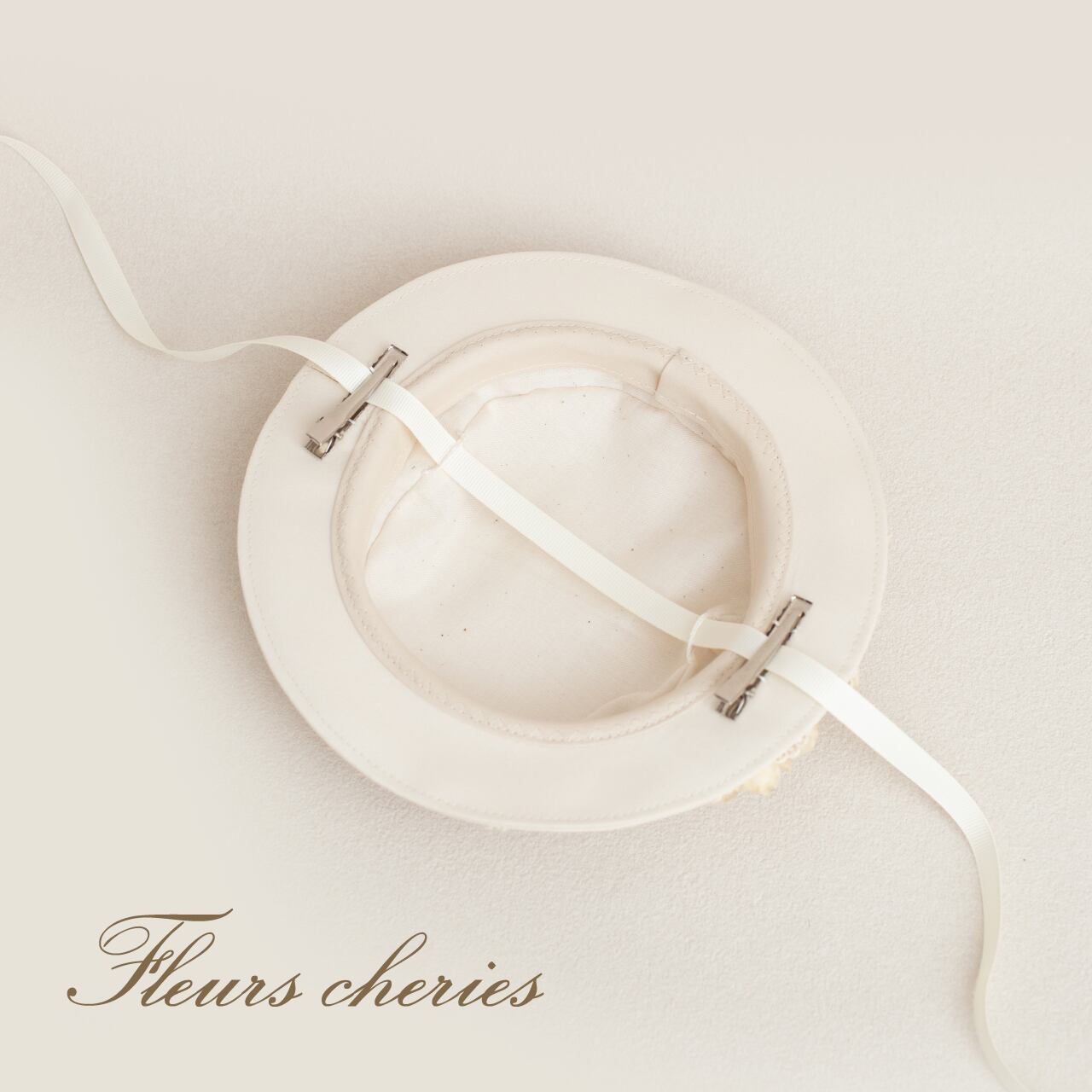 ブリムにはベージュのレースが付き、アンティーク感のあるデザインです。