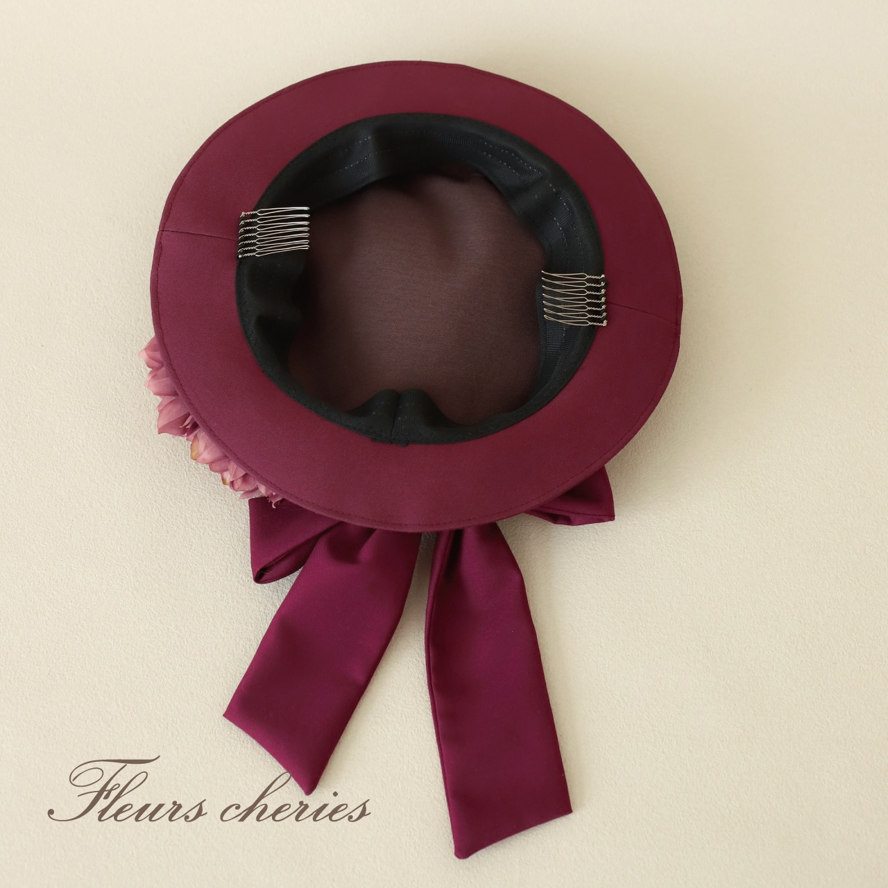 造花は落ち着いたピンク系とボルドー系のものを使用しています。